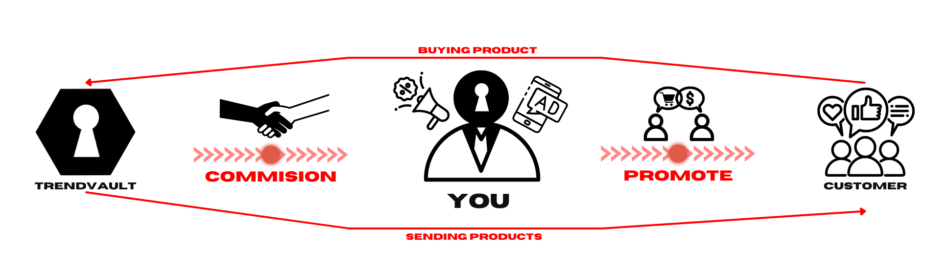 TrendVault Affiliate Marketing is an opportunity for anyone to earn money by promoting our products. Whether you're an agency, marketer, blogger, or influencer, you can earn unlimited commissions by sharing TrendVault links. Work from home and start earning with just a few clicks. Register now!